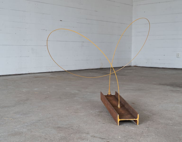 Bolts, rolled out into wire span, brace, loop and hover in space, joyfully escaping their duty to hold things in place. This project is grounded in the idea of “affordances”, the action possibilities an object offers depending on context and bodily relation to it. As a metalworker I perceive a bolt not only as a fastener, but as material with latent potential. Form is determined by gravity, tension and the specific resistance of the material. Slight changes in position or subtle twists can lead to drastic changes of the composition.