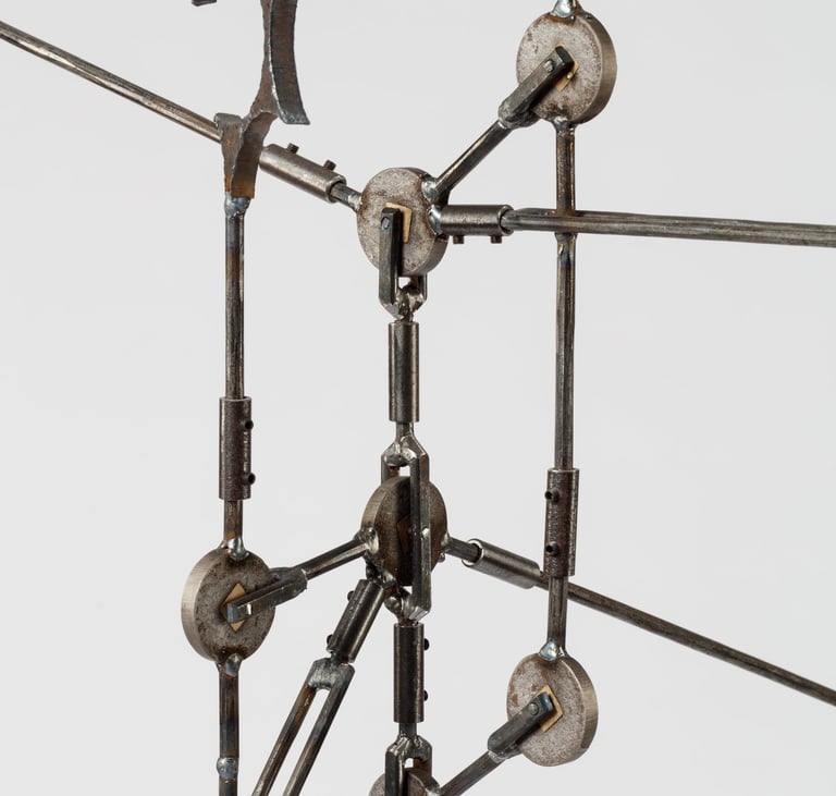 The pieces have aesthetical references to industrial and functional constructions like scaffolds and cranes. The single pieces are interchangeable and can create a wide range of different compositions.