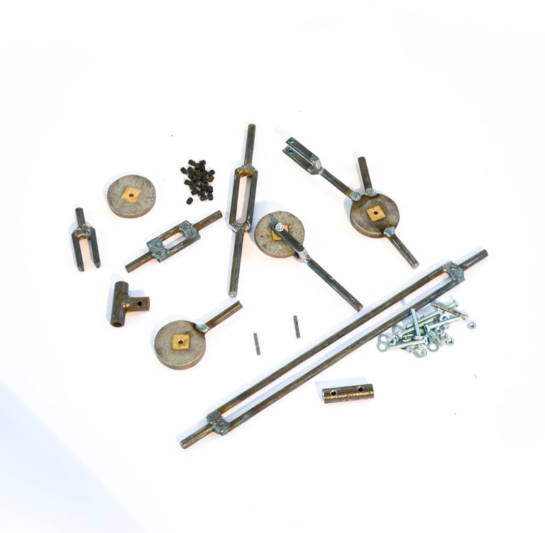 steel, brass, screws