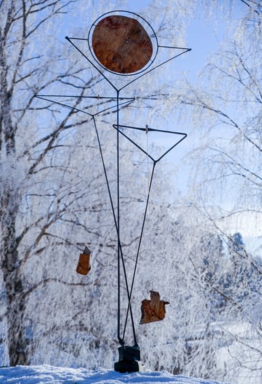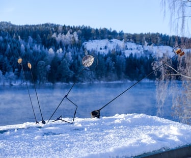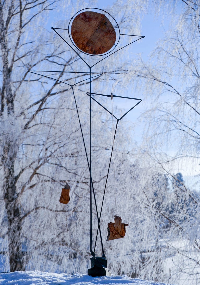 This is a series of scale models and sketches made in the fall of 2023. I explored different mechanics, movements and the combination of forged steel, string, glass and birch bark.
