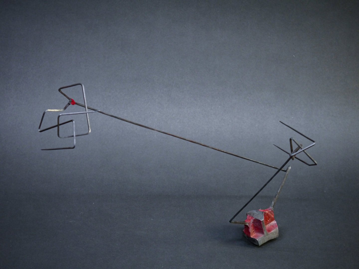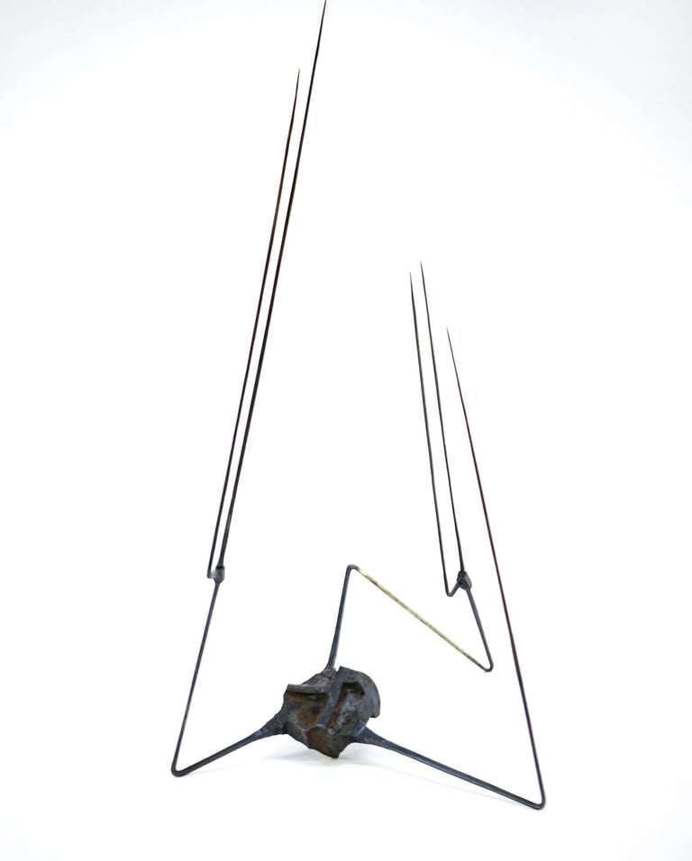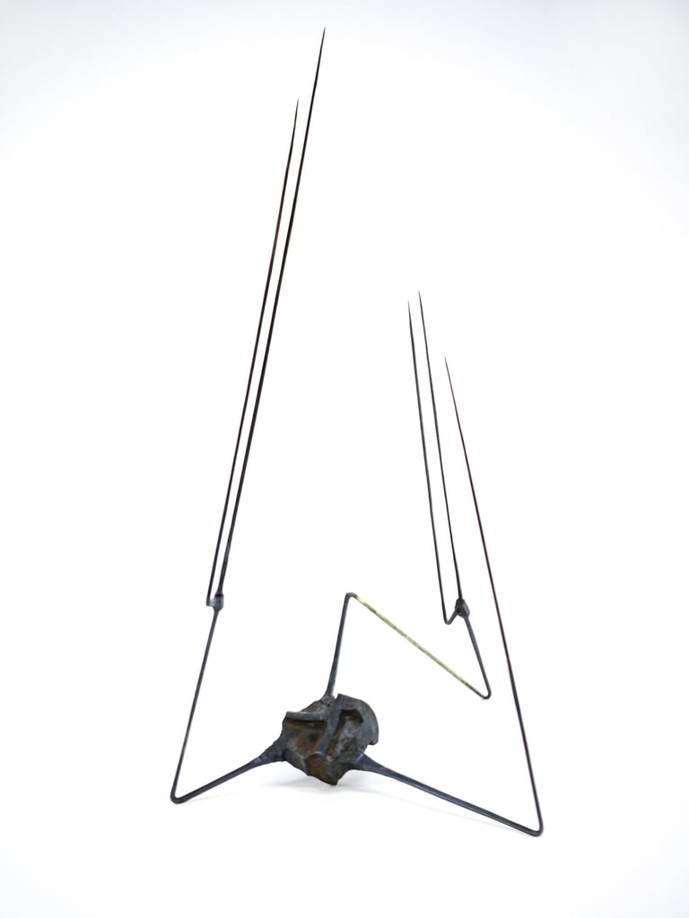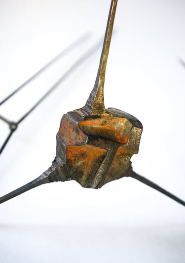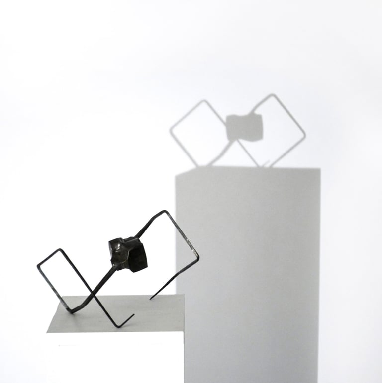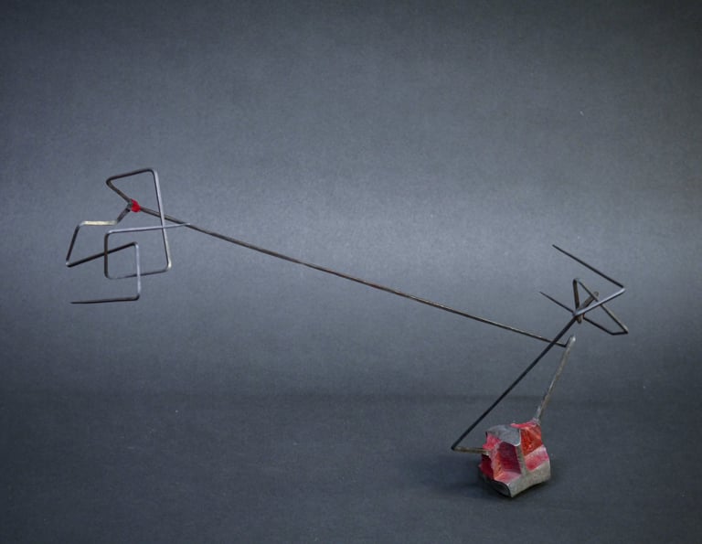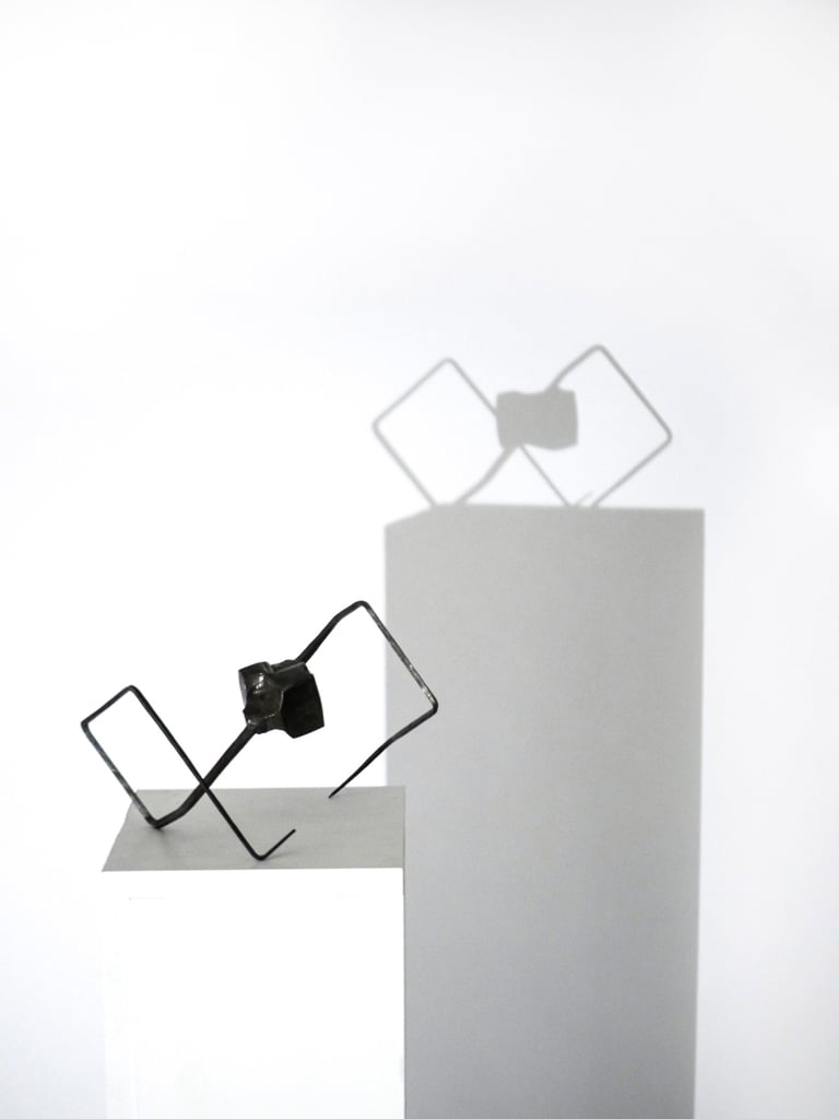 This series celebrates the plasticity of steel. The process of forging out long thin spikes from a solid cube of steel, created tactile transitions and a strong contrast between heavy and light, rough and delicate forms. This series marks the beginning of the ongoing exploration of balance and movement.
